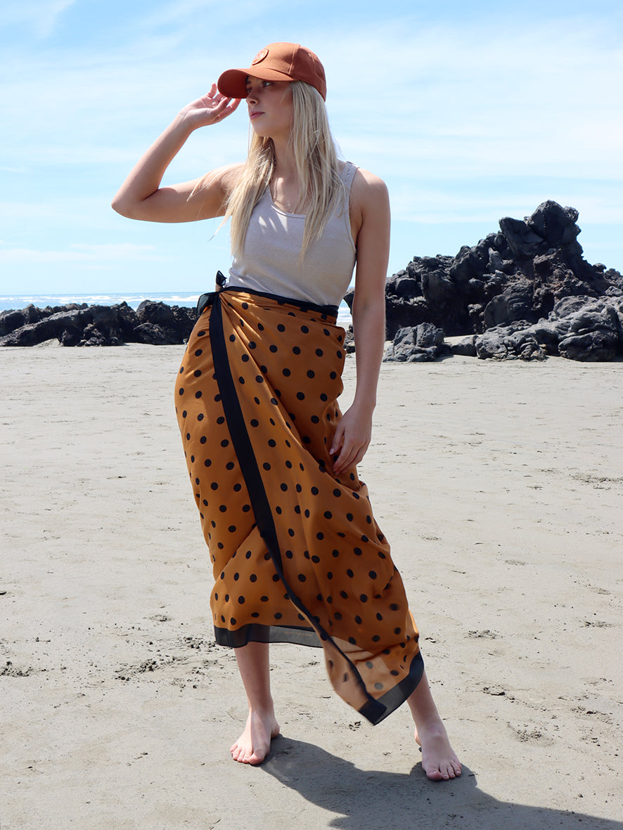 Timeless and chic, The Gallagher Scarf captures the essence of understated style with its tan and black polkadot design. Made from a beautiful blend of Silk and Rayon, it drapes perfectly and feels smooth against the skin.