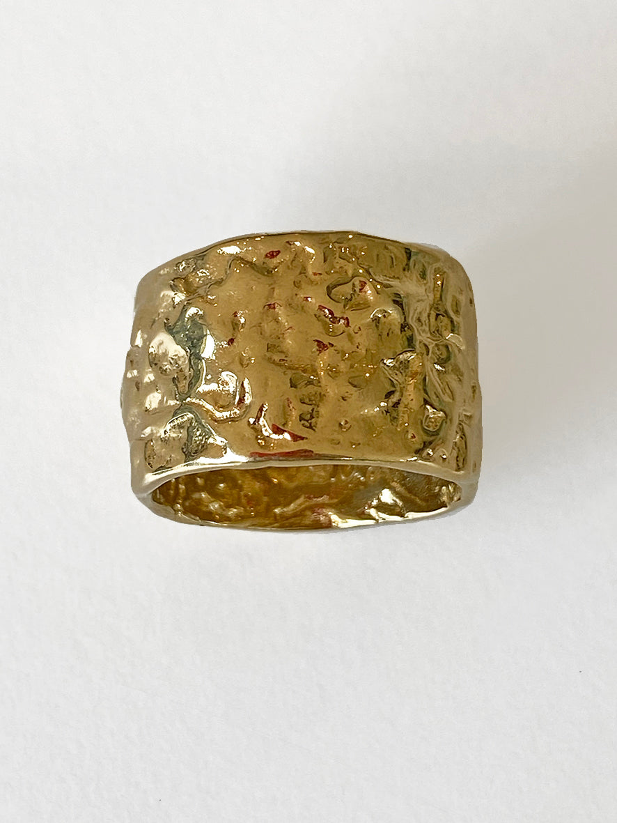 Elevate your scarf styling with the Dark Hampton Scarf Ring. A timeless scarf styling essential, crafted from stainless steel with a 14k gold plated, organic hammered finish. Designed to secure scarves effortlessly while elevating any look.