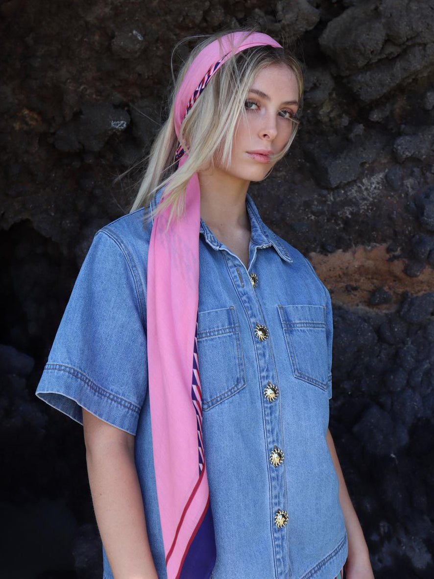 The Forbes is luxuriously soft, featuring an abstract pattern in navy, pale blue, pink, and burgundy that folds beautifully and pairs effortlessly with countless looks.